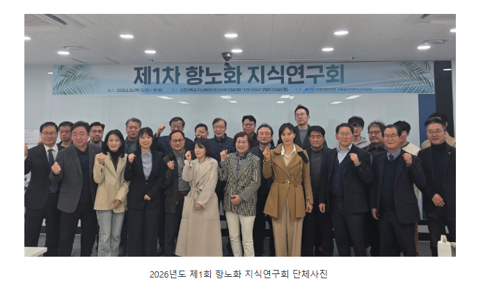 인천대학교와 한국과학기술정보연구원(이하 KISTI)은 지난 26일 인천대학교 미추홀캠퍼스 이노베이션센터에서 ‘2026년도 제1회 항노화 지식연구회’를 성황리에 개최했다고 밝혔다.