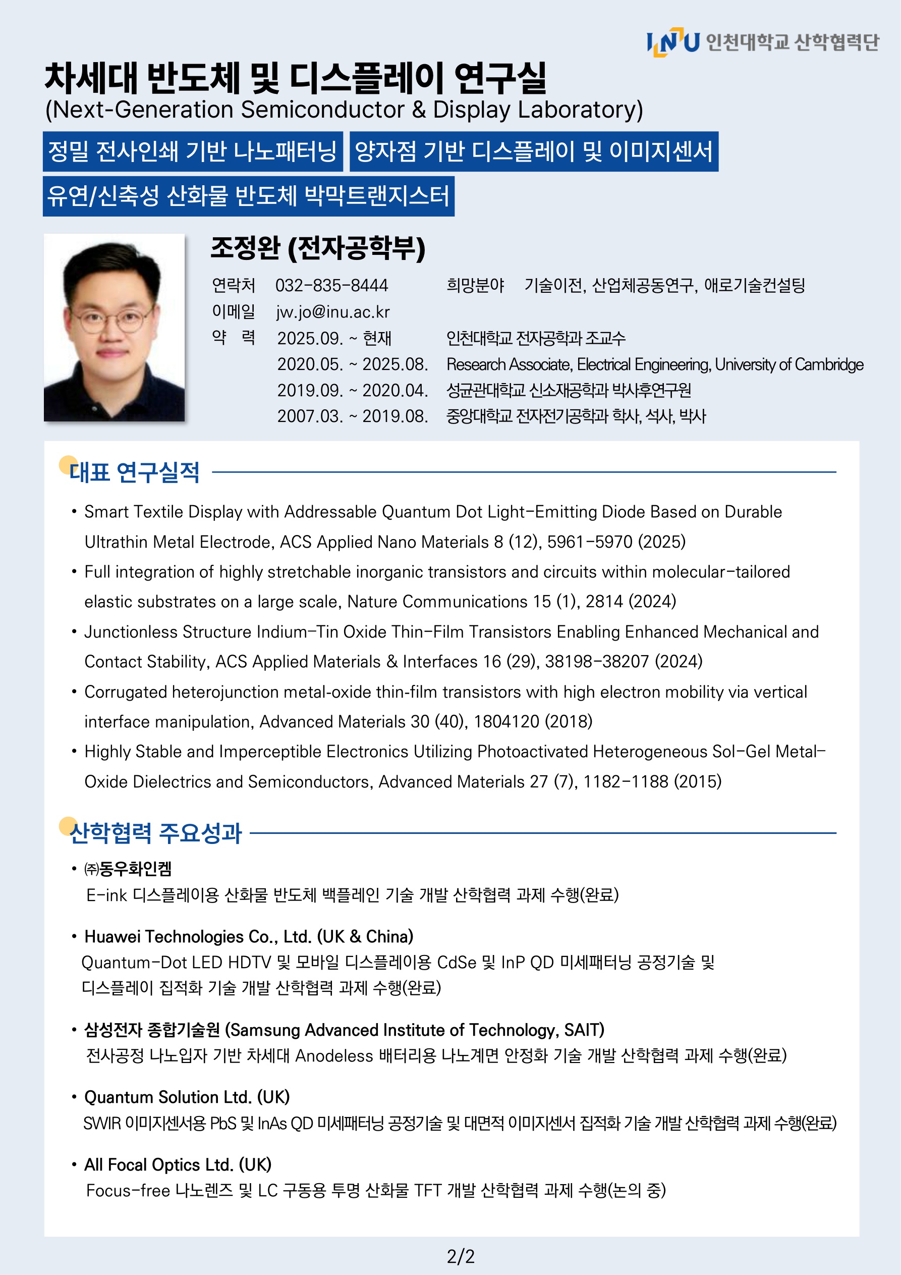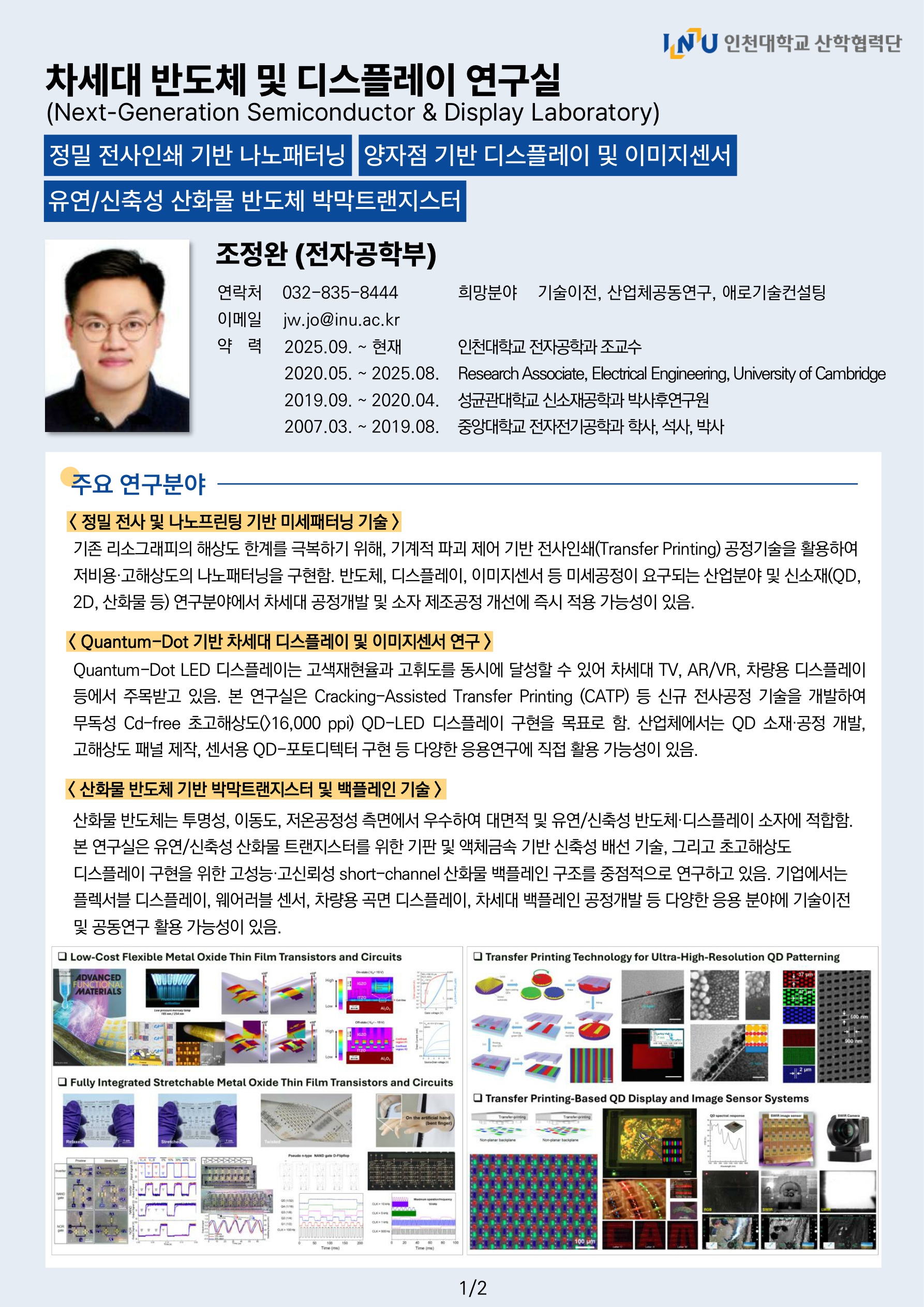 차세대 반도체 및 디스플레이 연구실(전자공학부 조정완 교수)