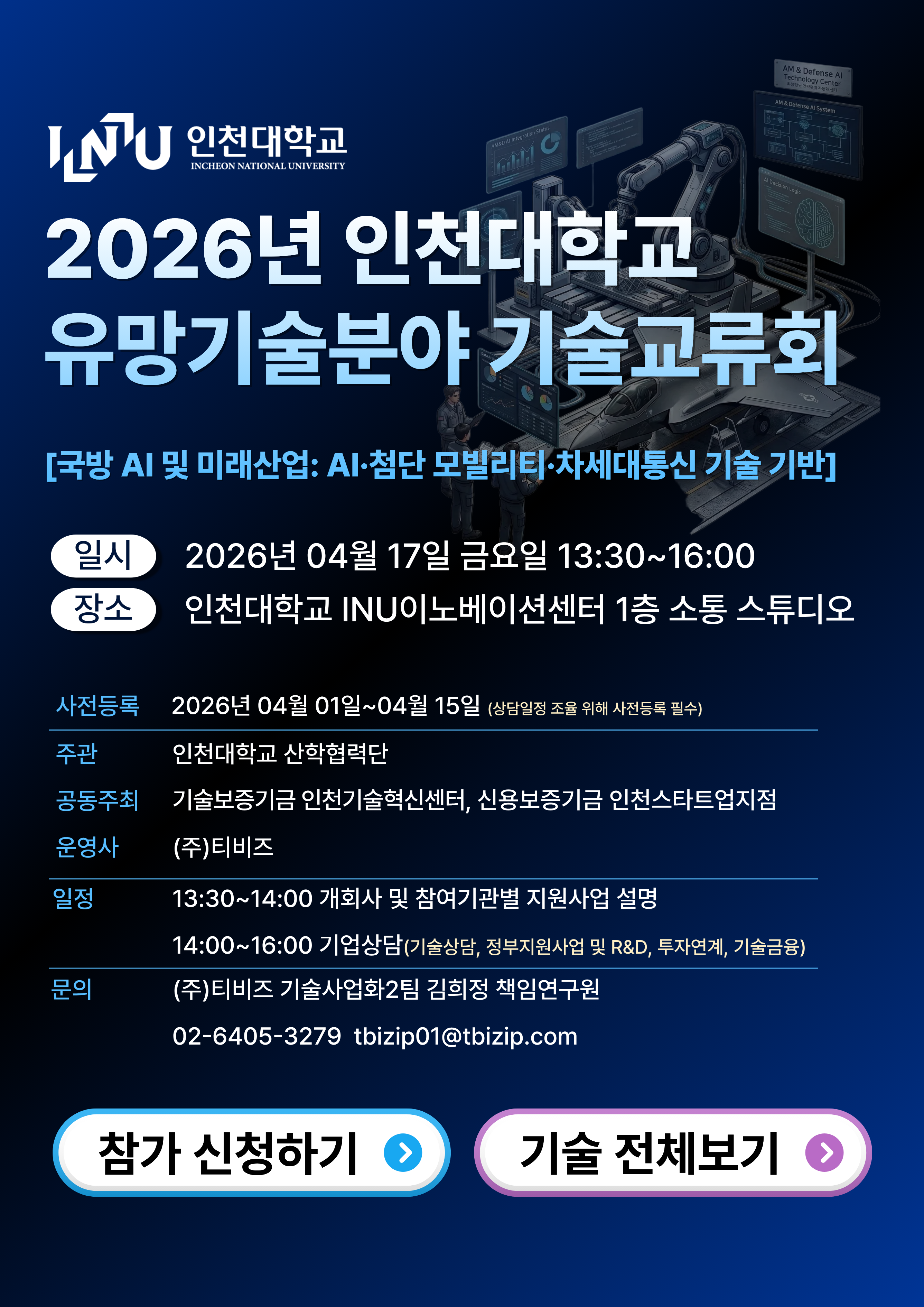 2026년 인천대학교 유망기술분야 기술교류회(4.17 1PM) 개최 안내