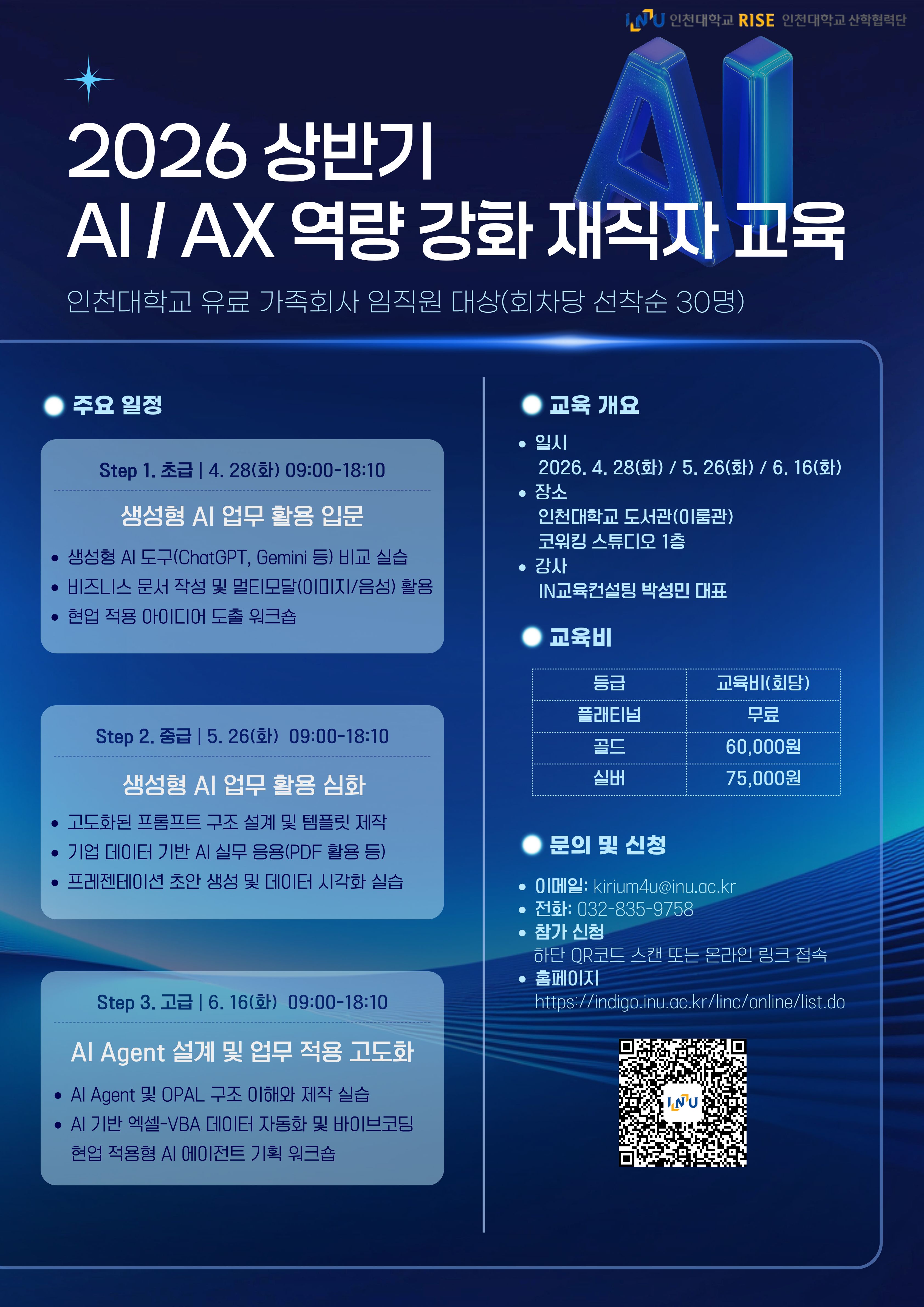 - 교육대상 : 인천대학교 가족회사 대상 30명 이내