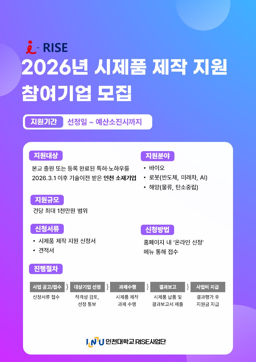- 대상기술: 인천대학교 RISE 특화분야