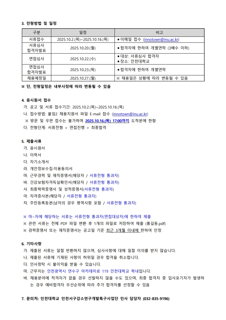 2025년 제2차 인천시민대학 시민라이프칼리지 인천대캠퍼스 계약직원 채용 공고(~10.15.(수) 17시까지)